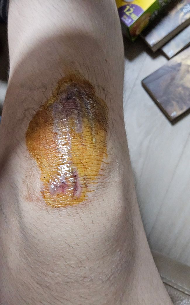 그리고 집에 와서 메디폼을 바르고 몇시간 있다가 진물이 나는것 같아 뗐습니다.