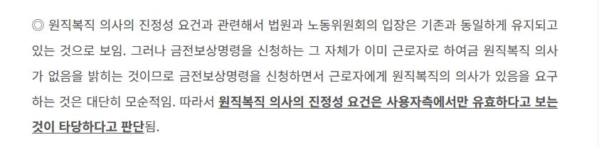 위에서도 이야기했지만 저는 금전명령을 신청했기에 복직에 대한 의사는 없습니다.