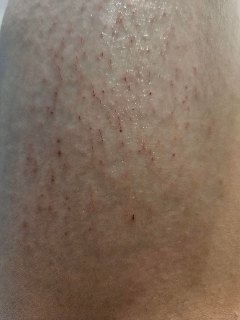 피부건조증인지 모르겠는데 하루종일 엄청쓰라렸고 자고 일어나보니 이렇게 꼭 넘어져서 쓸린것마냥 양쪽 다리에 상처가 무릎밑에서부터 발목까지 나있었어요...