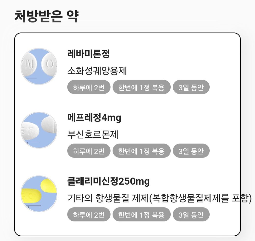 처방받은 약에 스테이로이드 성분이 포함되어 있나요?