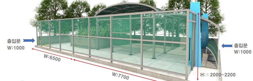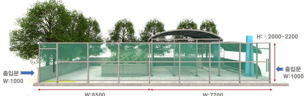 붙임 그림와 같이 기설치된 렉산 지붕(면적 40m2)구조물에 벽체(2면)을 추가설치할 경우,