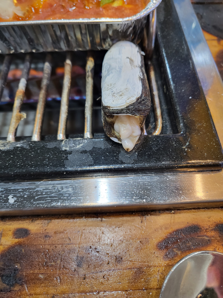 맛조개(죽합). 길쭉하게 생긴 생김새가 특징. 죽합과라는 종류는 원통형으로 길쭉한 것이 마치 대나무 마디를 닮았다고 해서 붙은 이름이다. 껍데기는 의외로 얇고 잘 부서지며, 몸 전체를 덮고 있는 황갈색의 각피도 마르면 쉽게 벗겨진다.해부