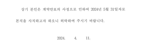 계약만료시 사직서를 제출하지 마세요.