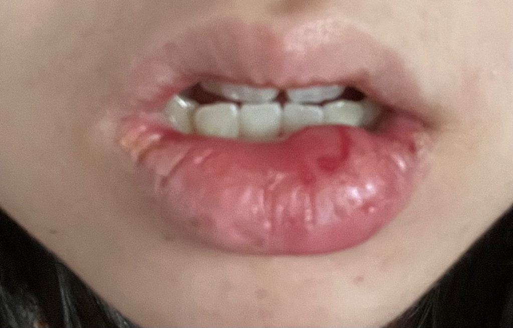 입술 안쪽으로 봉와직염이 발생한 것으로 보이며 대부분은 냉찜질을 해주면