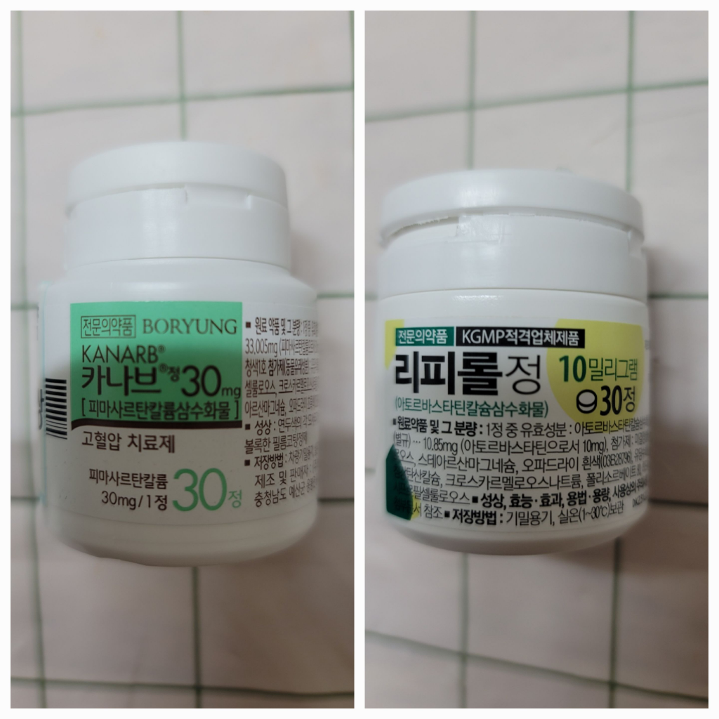 카나브정30mg와 리피롤정10mg는 음주 후 복용하셔도 됩니다.