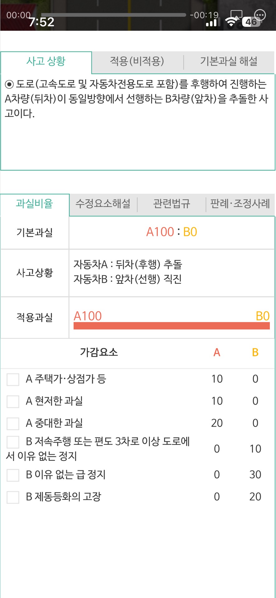 1명 평가후방 추돌시에 선행 차량에게도 과실이 산정되는 경우는 이유없는 급제동인데 주차장 내에서 시속 10키로