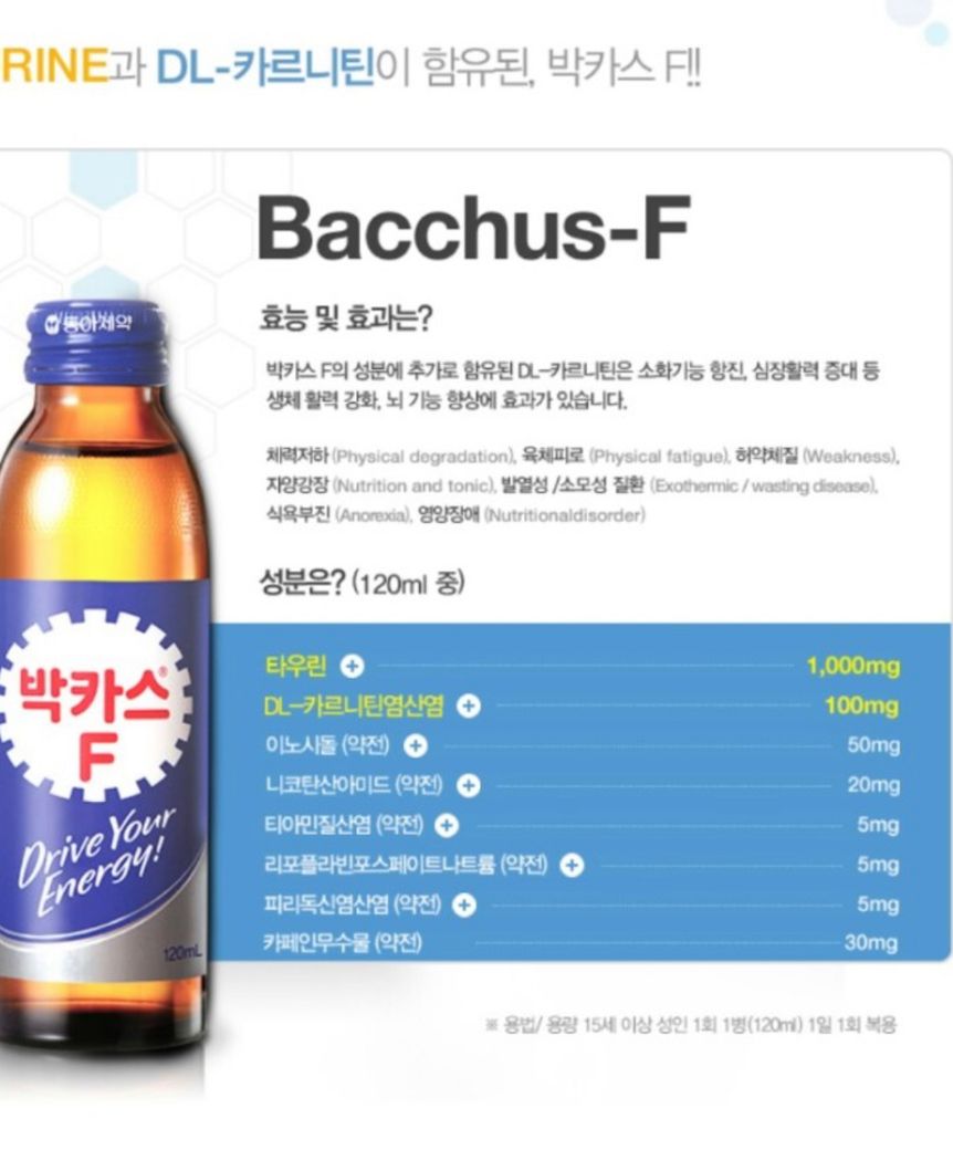 오후 12시쯤 점심 식사 전에 박카스f ( 아래 성분표, 특히 카르니틴 100mg)