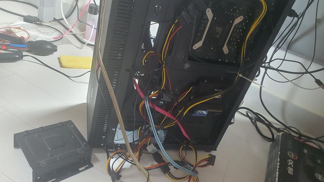 파워는 새거달고, 기존파워 그래픽카드 보조전원 케이블이 두 개라서. 그걸 cpu 보조전원에 연결하는 실수를 범해서.
