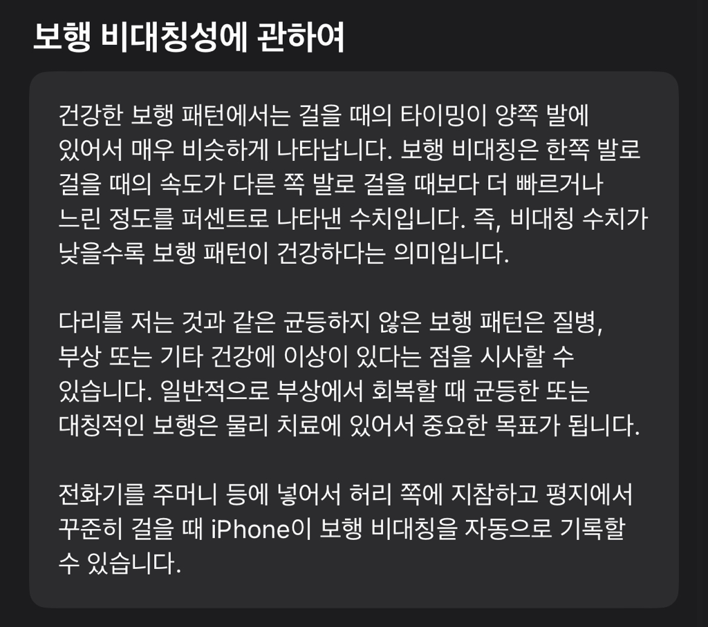스마트폰의 앱으로 정확한 판단을 내리기는 어렵네요. 한손으로 들고걸었다면 영향이 있을 수도 있을 것 같구요. 평지에서 다시 한번 해보시지요.