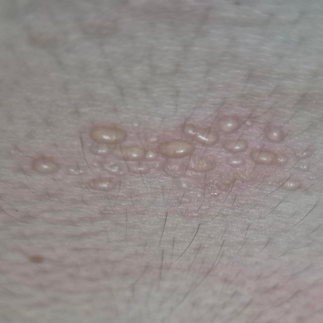 사진과 같이 가슴 가운데에 갑작스레 수포같은게 생겼습니다.