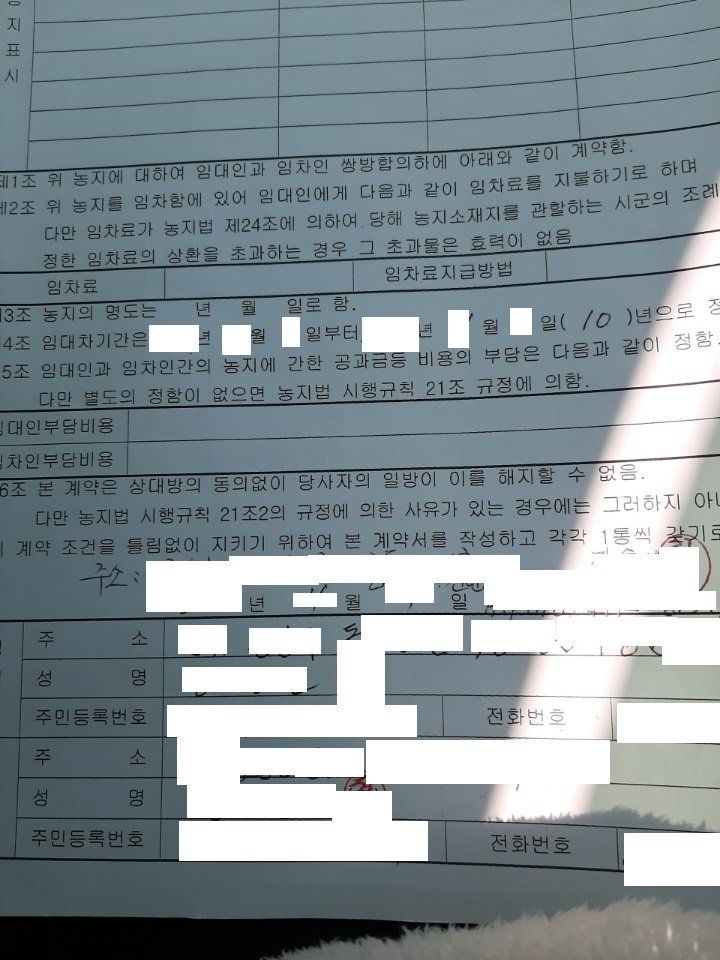 조항을 보지도 않았는데 일방적으로 작성한 계약서로 1년 농사를 지어 직불제 혜택을 이미 받은 것으로 보입니다.