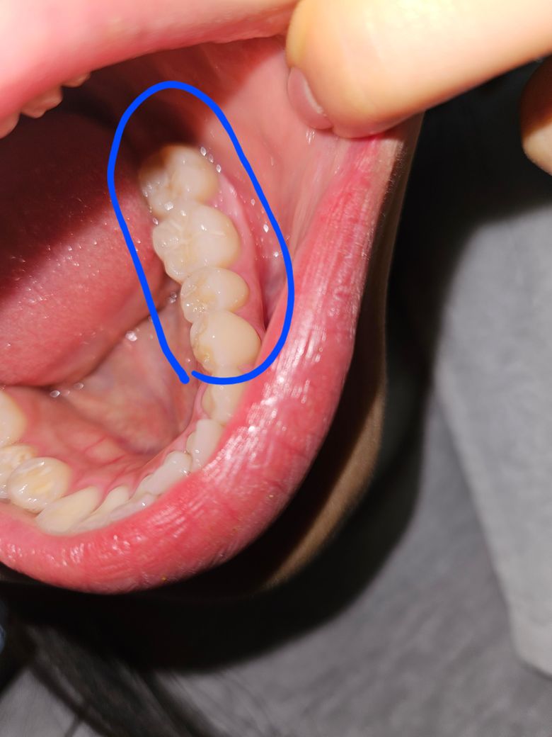 사진상에서 바로앞 어금니는 꽉찬 잇몸인데도