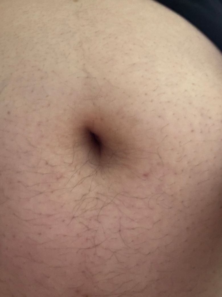 오른쪽 배꼽위쪽이 유난히 좀 튀어 나와있는데 손가락으로 눌렀을땐 푹들어가고 아프진않습니다.