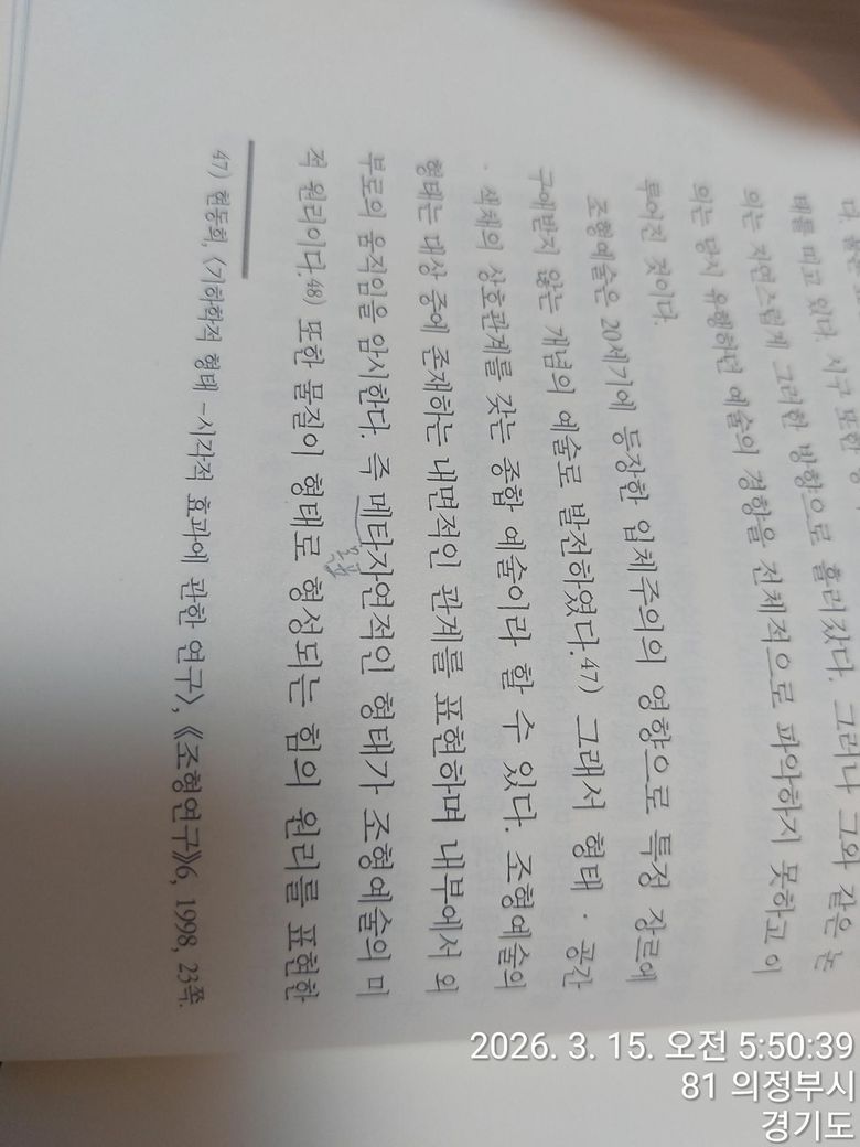 안녕하세요. 손용준 전문가입니다. 여기서 메타 자연적인 형태가 조형 예술의 원리 이다 라는 말에서 메타라는 의미는 그리이스어로 " 넘어서, 초월해서 " 라는 말 입니다. 즉 어떤 주제나 개념을 자기만의 창조적이고 추상적인 수준에서 나타내는 것을 의미 합니다. 즉, 조형 예술이란 단순히 눈에 보이는 자연의 겉모습을 그대로 본뜨는 것이 아닌 이를 초월해서 자연의 본질, 구조, 혹은 그 이면의 원리를 추상화하여 자기만의 방식으로 표현하는 것이 진정한 조형예술이라는 것 입니다.