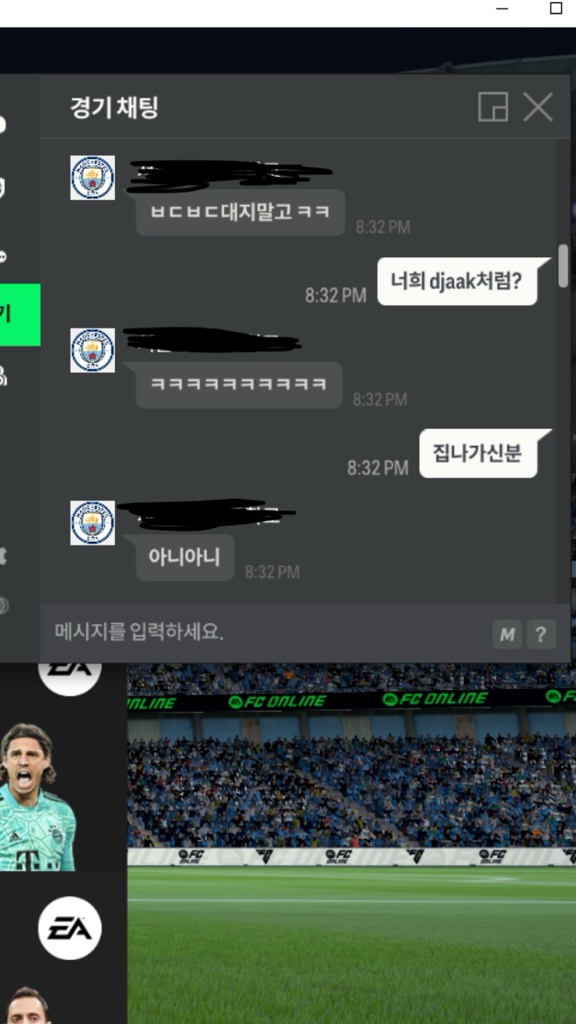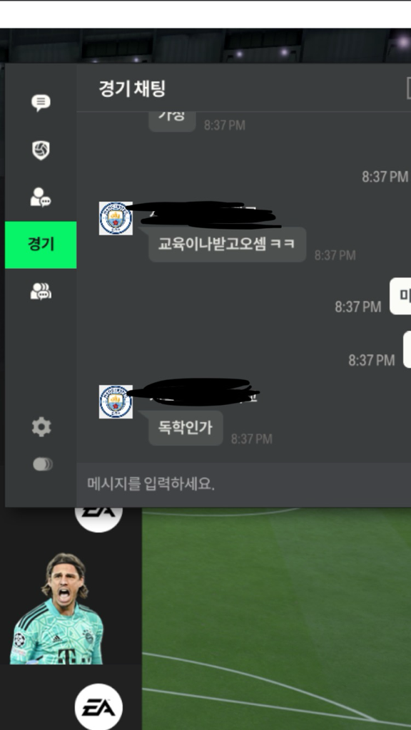 피파 축구게임을 하면서 상대방에게 패드립을 했습니다 성적 패드립은 안했습니다 올린 사진을 보시면 상대방이 어떤 말을하면 "너희엄마처럼?" (영어로 쓰여진 부분) 이런식으로 패드립을 했는데 통매음 모욕죄 성립이 될까요? 물론 상대방도 패드립 비슷한 말을 했는데 고소가 되는지 모르겠습니다. 중간중간에 제가 상대방 채팅을 차단해서 보지 못한 부분도 있는데 고소 당한다면 상대방이 했던 채팅들도 볼 수 있나요? (상대방이 제가 차단한 시점에서 패드립을 했을 가능성이 있기 때문에 ㅁ)