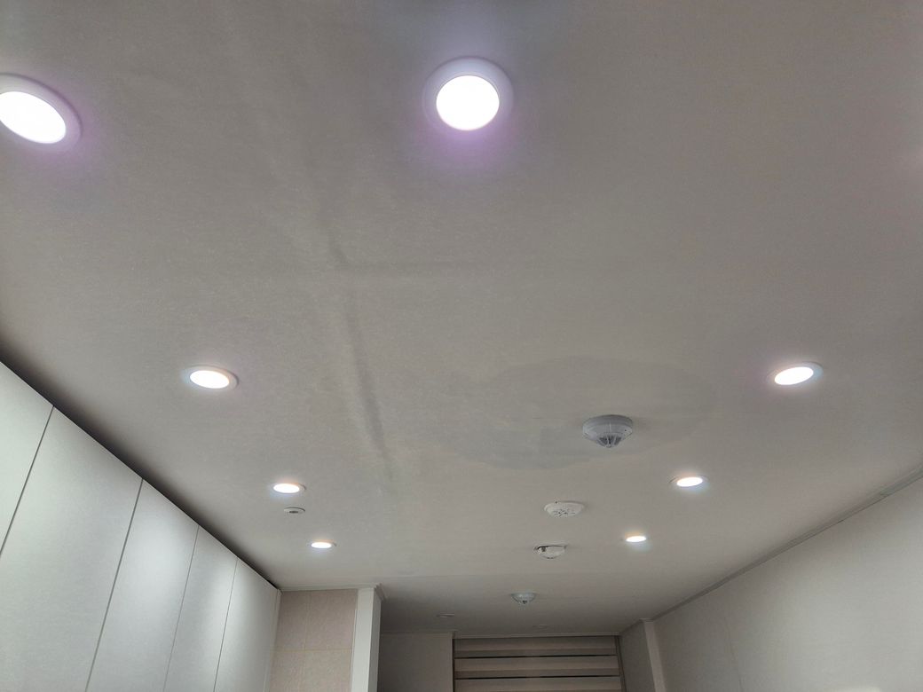 만약 사이에 곰팡이포자가 발생해 증식하고있다면 이미 천장이 젖은 단계부터 조금씩 울긋 불긋 검은색 또는 청녹색의 콤팡이 얼룩들이 조금씩 보여야 하는데요.