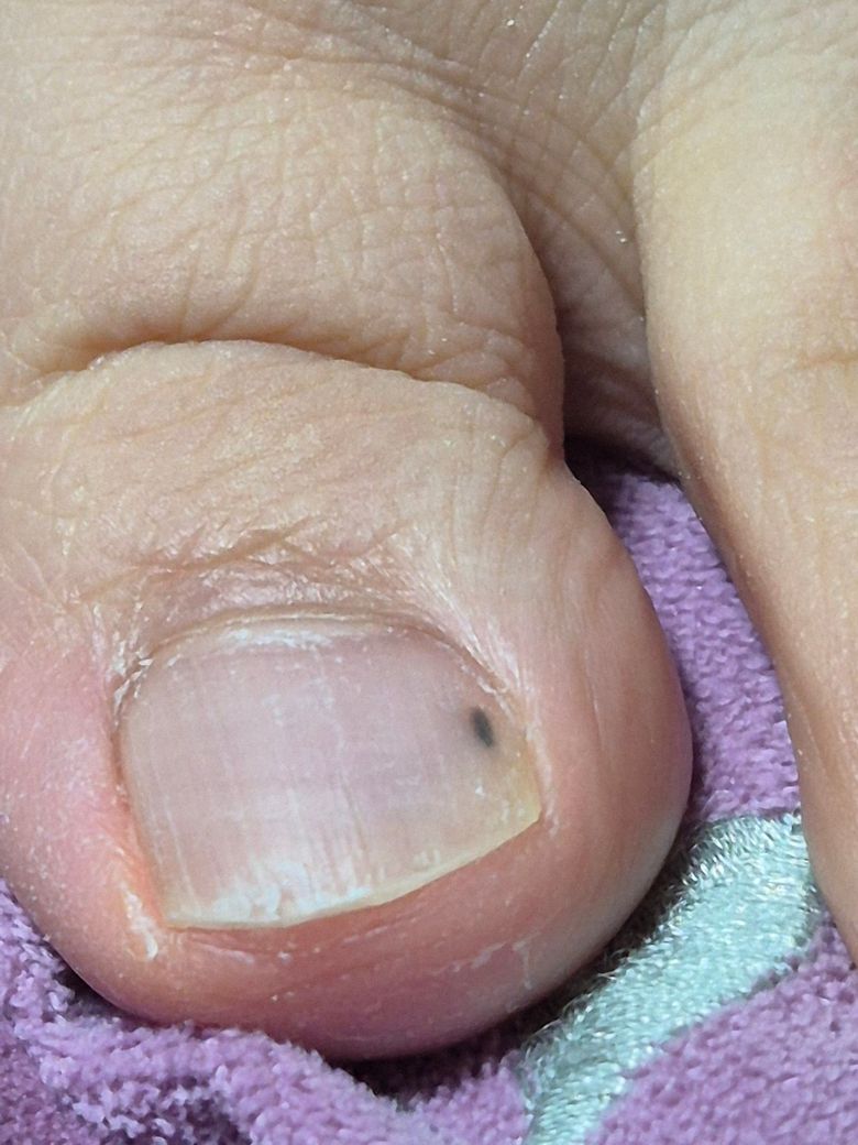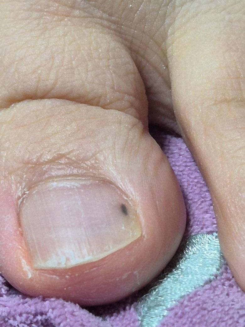 현재 어머님의 발톱에 생긴 검은 점의 악성 종양 가능성으로 질문을 주셨습니다.