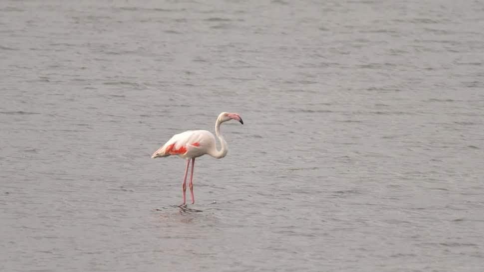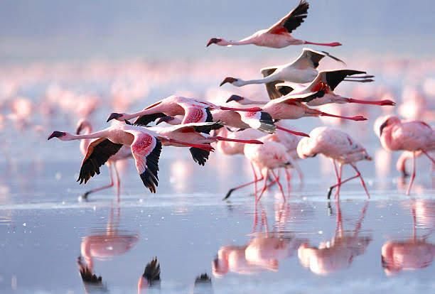 그런가하면 홍학 무리는 긴 목과 다리, 특이하게 생긴 부리, 발가락 사이에 물갈퀴가 나있죠.