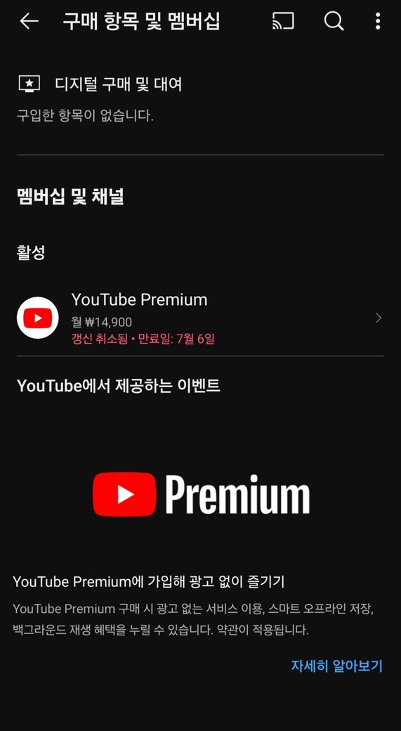 유튜브 결제일이 7/6일인데, 7/5일에 결제가 됬내요.