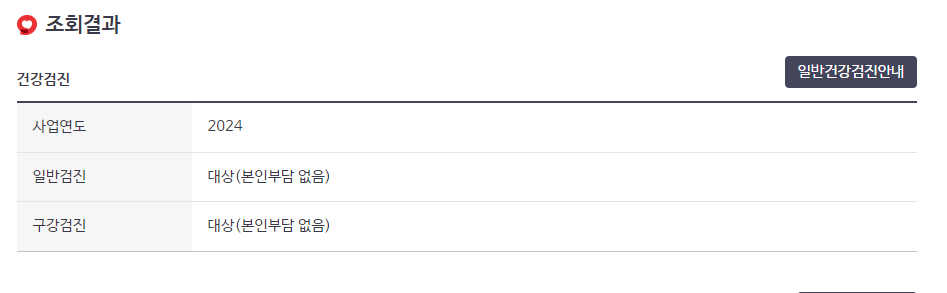 사업연도 2024일반 검진 대상(본인 부담 없음)