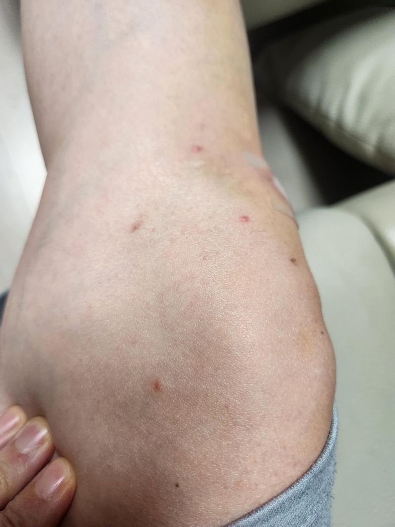 사진만 봐서는 정확하게 파악이 어려우므로 피부과 진료를 보시기 바랍니다. 다만 적어주신 내용만 봤을 때는 원인미상의 벌레나 진드기류에 의해 발생했을 가능성이 높아보입니다. 참고하시기 바랍니다.