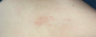 질문하신 내용에 대하여 아래와 같이 답변 드립니다.사진이 흐려서 정확하지는 않으나 따끔거리는 통증이있다면 대상포진도 의심이됩니다.대상포진은 신경절을 따라번지므로 편측으로생기나 시작이 중간에서 생겨 한쪽방향으로 번질수는있습니다.