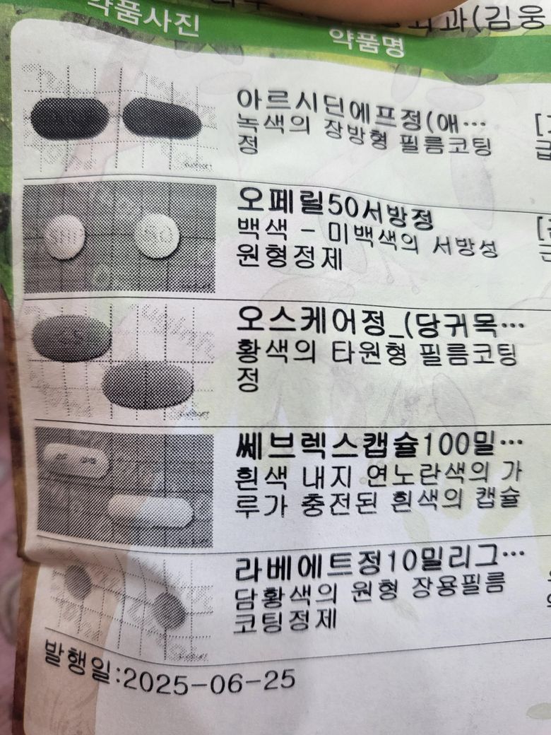 오페릴과 오스케어정이 속쓰림을 유발할 수 있습니다.