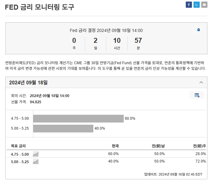 현재 시장에서는 금리 인하가 0.25%p 또는 0.5%p로 예상되고 있지만, 실제 인하 여부와 폭은 연준의 정책 기조에 따라 달라질 수 있습니다.