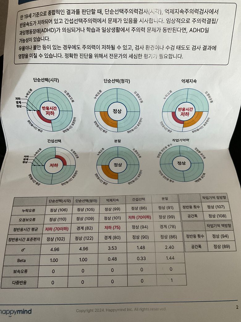 Adhd 검사 (CAT 검사) 결과 좀 봐주세요