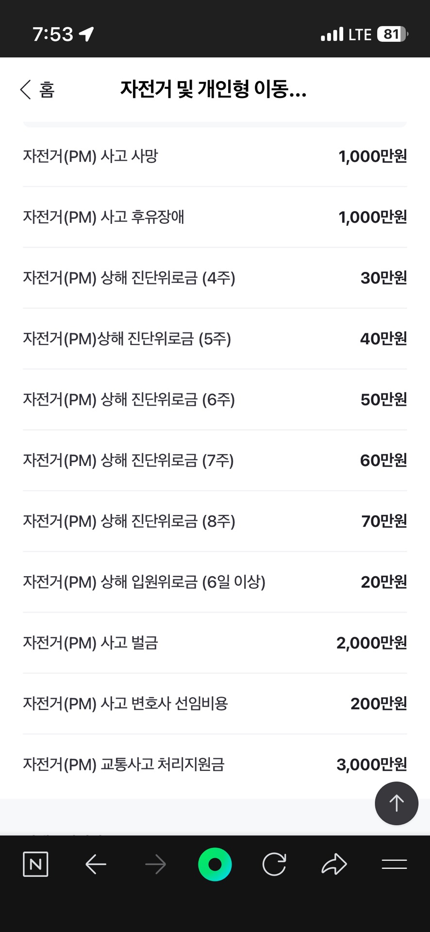 : 우선 서울시 자전거보험의 경우 각 구별로 차이가 있으나, 기본적으로 핸드폰 액정파손은 보상하지 않으며, 최초진단이 4주이상인 경우 일정 위로금이 지급이 됩니다.