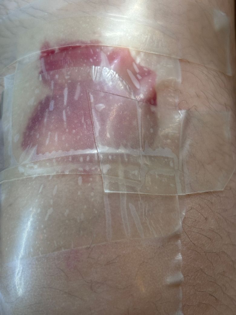음...덕지덕지 붙여놓으셨어요. 상처가 깊지 않다면 소독을 잘 하고 항생제 연고만 발라줘도 된답니다. 진물이 많이 난다면 다시 이지덤 붙여 놓으셔도 되지만 진물이 많지 않으면 밴드 정도만 붙여 주셔도 됩니다.