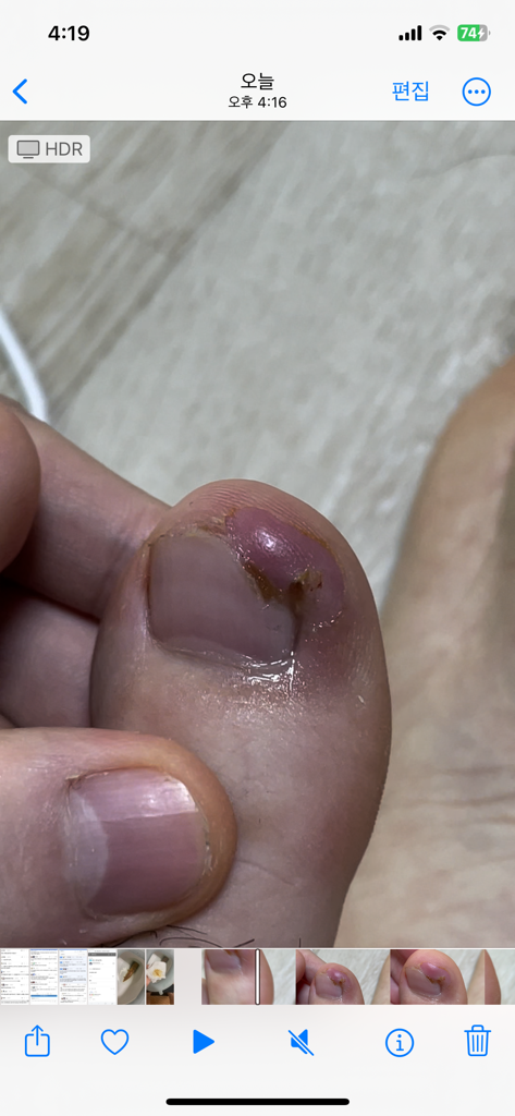 엄지발가락 감염 부종여부 알고 싶습니다