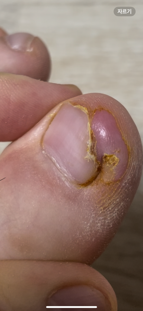 그리고 어제 처음에 달랑거리던 남은 발톱을 제거했고