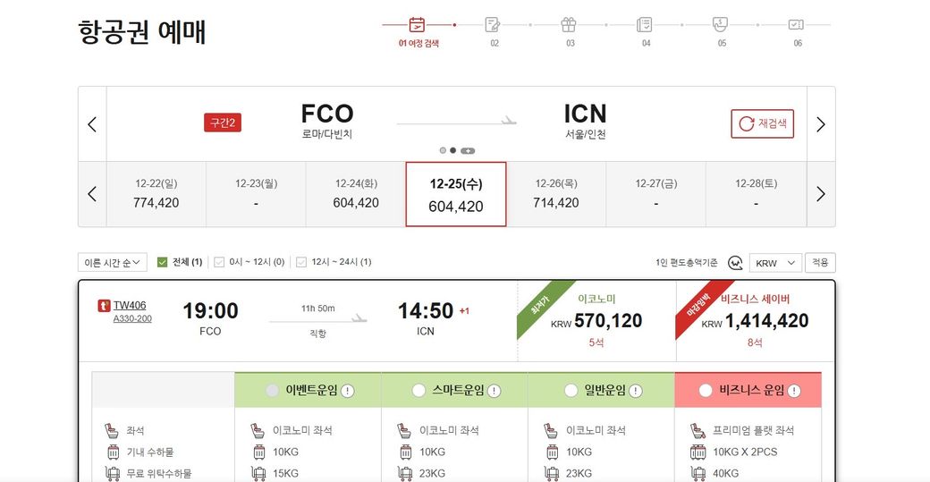 로마에서 한국으로 오는 동안 하루가 더해지는 것이니 25일 오후2시50분 도착 하려면 24일 출발편을 예약 하는것이 맞습니다.
