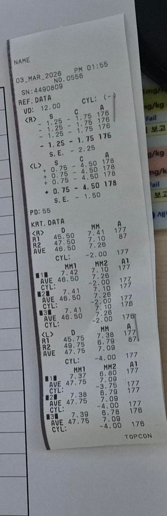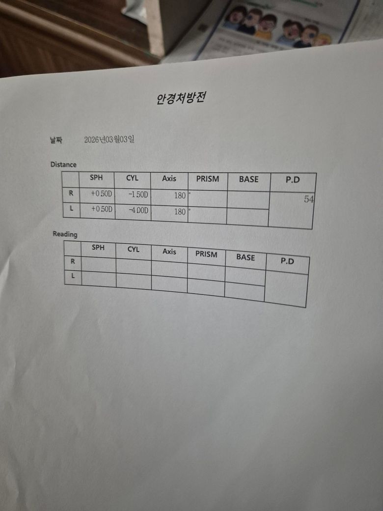 병원에서 검사받고 첫번째 사진이 검사지입니다. 이후 안경처방전을 받는데 아이와 함께 있다보니 정신없이 받았네요;; 집에 와서 생각해보니 제대로 받았나 싶어져서요;; 혹시 알 수 있을까요??