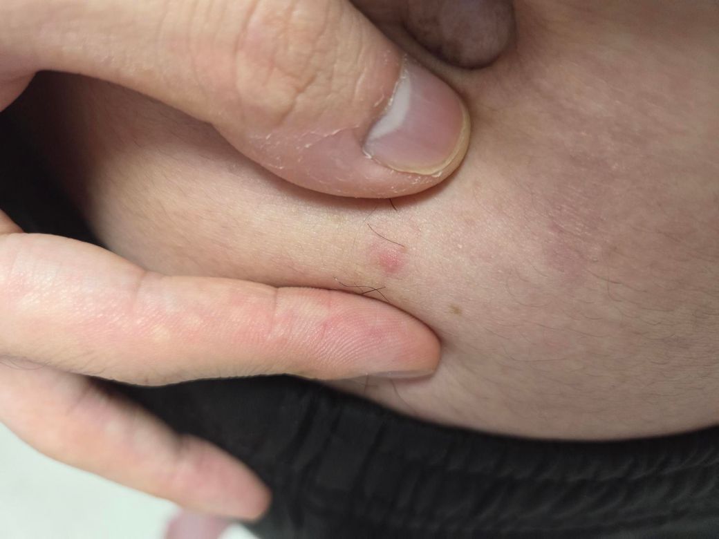 사진처럼 배꼽아래쪽에 뭐가 났는데 이 부분쪽이 약간 아픈 느낌도 드네요 그냥 모낭염인가요?