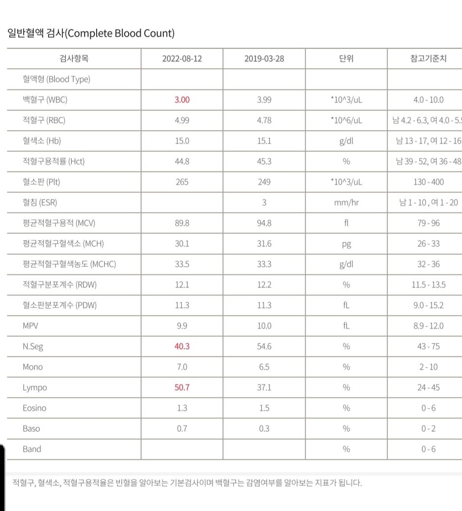 혈액검사결과 백혈구, 중성구, 림프구 수치가 정상이 아닌데 무슨 문제일까요?