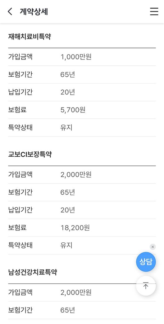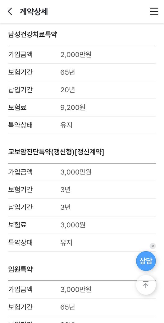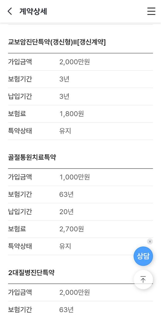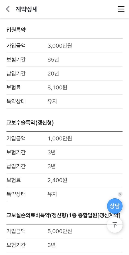 - 실손 / 진단비 / 수술비 / 재해보장 / 사망보장까지 고루 준비됨