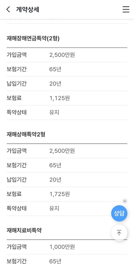 - 재해치료비 가입됨.
