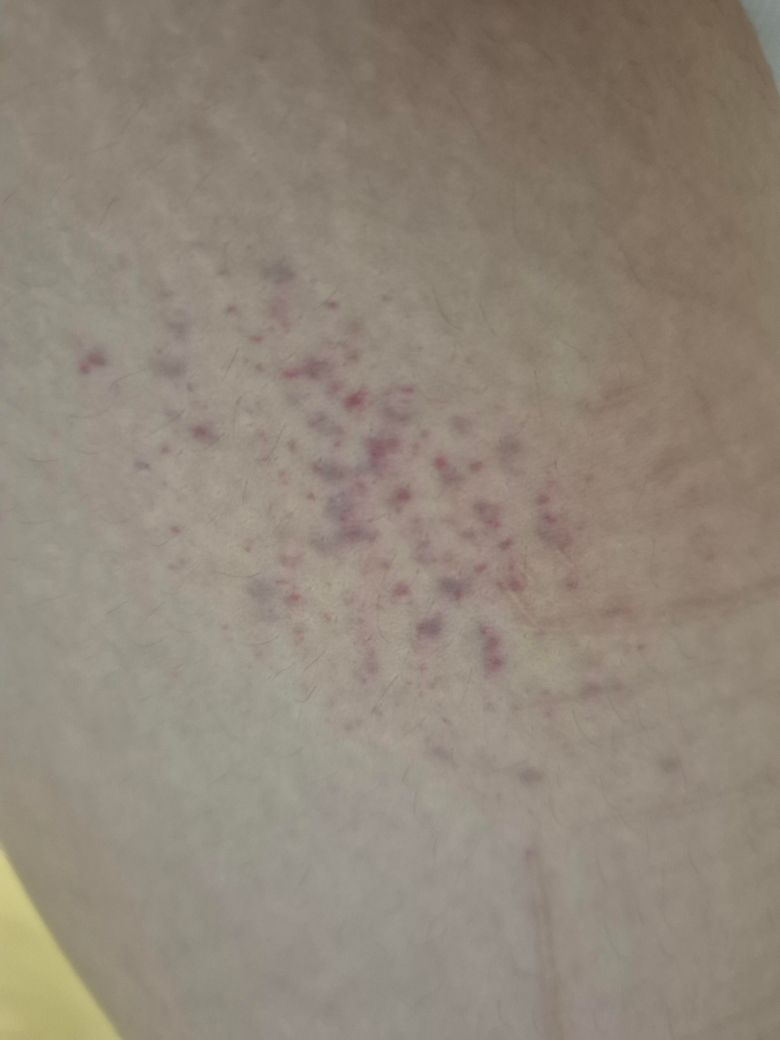 그냥 딱히 뭘바르고 잔것도 아니고 자기전에 부딪힌 것도 아니고 평소처럼 씻고 다음날 아침에 일어났더니 허벅지 위쪽에 갑자기 이런게 생겼어요. 제가 피부가 좀 민감한 편이라서 뜨거운 물로 씻으면 몸 군데군데가 살짝 붉어지고 살짝 가렵다가 금방 다시 돌아오긴 하거든요? 근데 이런 경우는 처음이라서 왜 이런지 모르겠어요