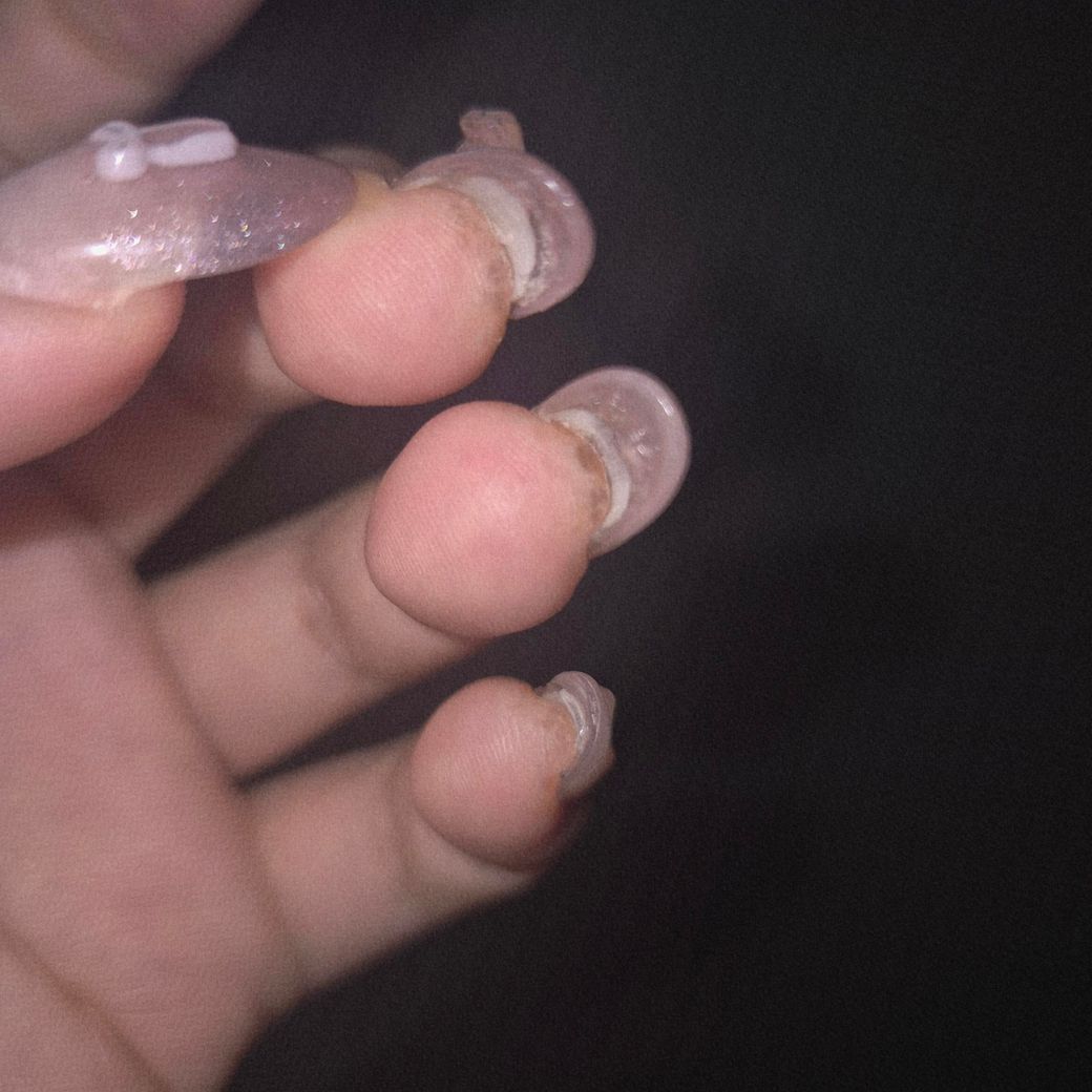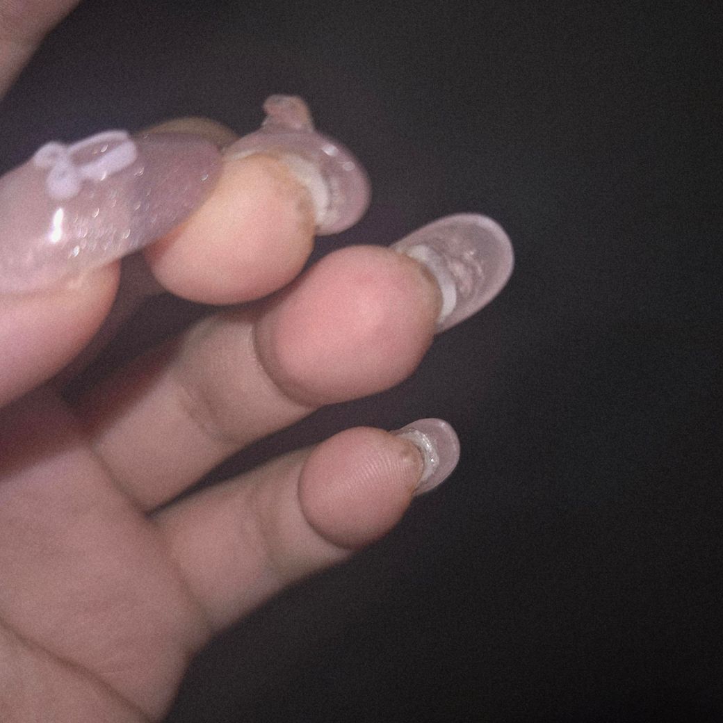 네일팁을 uv스티커로 붙였는데 사진처럼 저 부분이 살짝 부은거 같기도 하고 징그럽게 뭐가 물집아닌 물집이 잡힌거 같기도 하고.. 붙인게 처음도 아닌데 갑자기 저렇게 생겼어요 건들면 조금 따끔해요 세손가락만 저렇게 됐고 나머지 손은 다 괜찮아요 .. 뭔지 알려주실 분 🥹