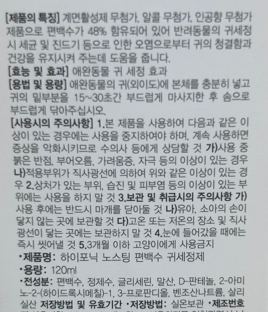 귀청소한다고 탈지면 작게 뜯어서 하이포닉 귀세정제 묻혔는데 갑자기 먹어버렸어요ㅠ 작은 탈지면은 배변으로 나오나요? 그리고 귀세정제도 묻어있어서 괜찮나 걱정이네요 아래 성분표도 올려드려요