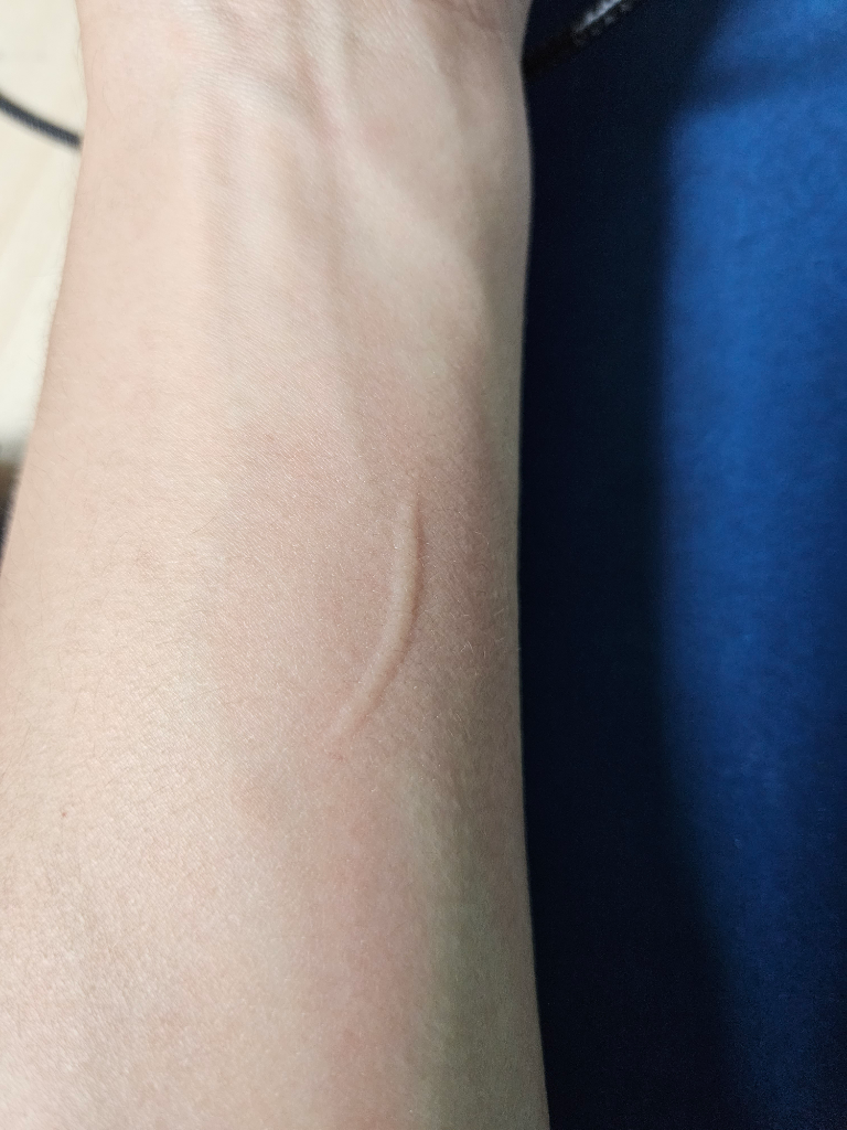 두드러기의 일종으로 보입니다. 알레르기약을 복용해서 증상 완화를 기대해볼 수 있는데, 아마 반복적으로 문제가 나타날 것이므로 피부과 진료도 고려해보시기 바랍니다.