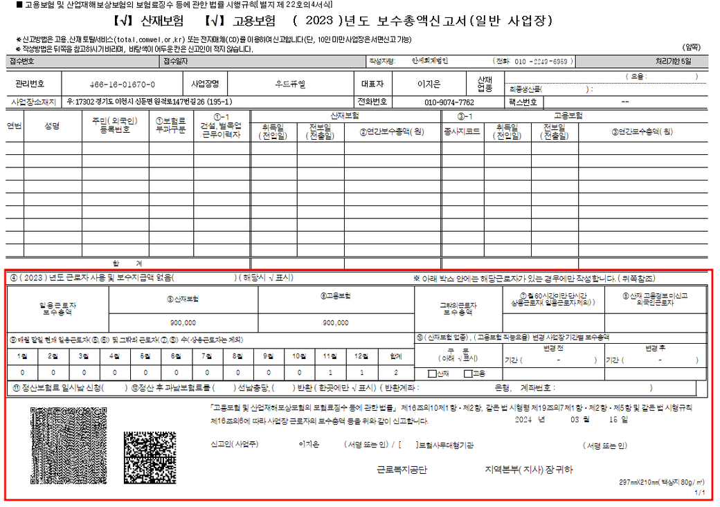 일용직근로자 고용, 산재 보험 보수총액 신고서 작성하였습니다.
