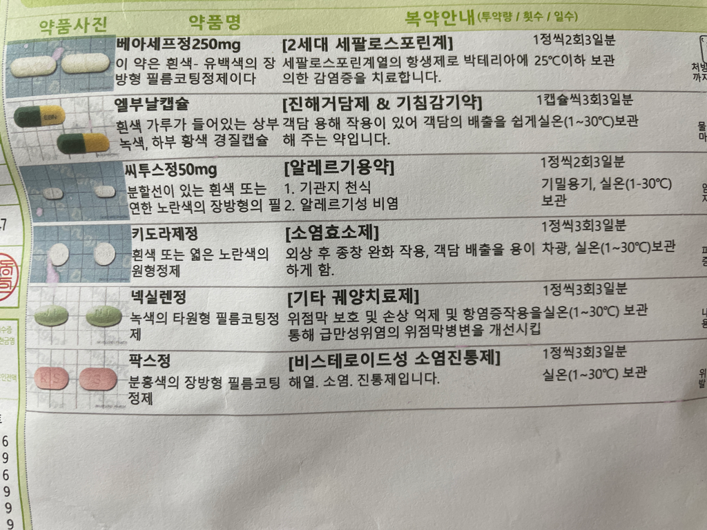 증상이 개선되지 않는경우 다른 약을 추가로 처방받아서 복용하시길 바랍니다.