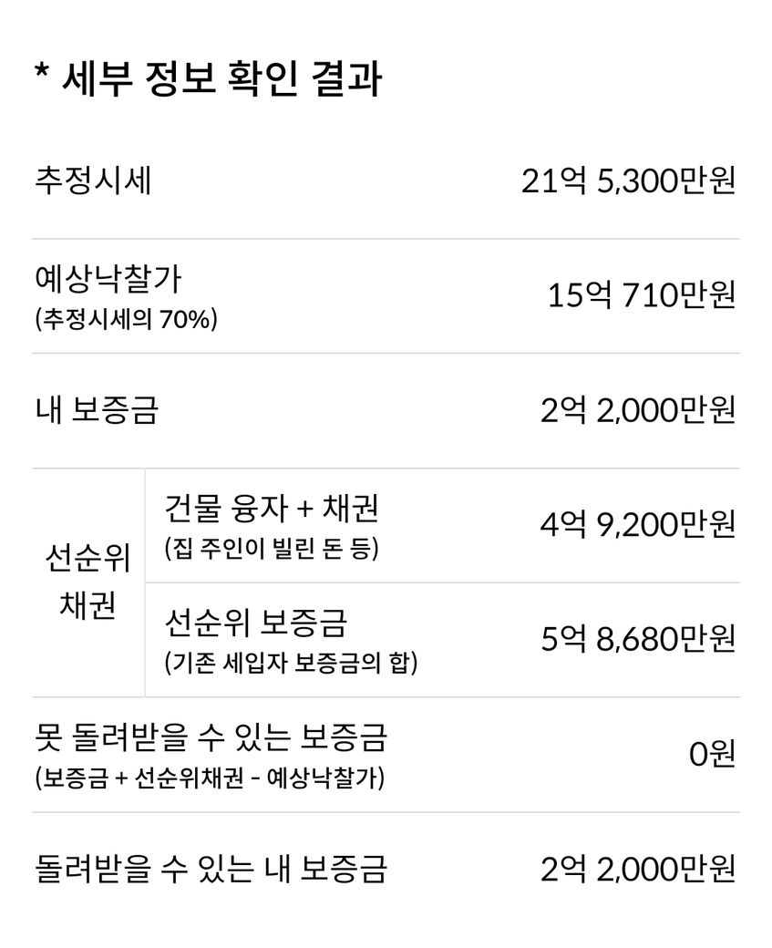 2.2억 전세이고 아래는 해당 집의 선순위 보증금입니다..
