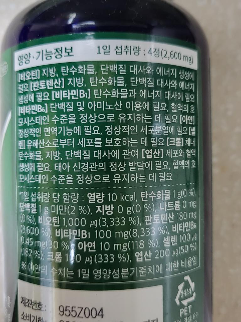 찍어주신 사진의 멀티비타민 정보에는 함량이 표시되어있지 않아