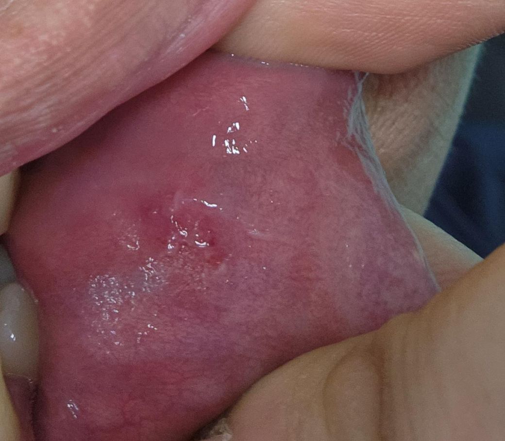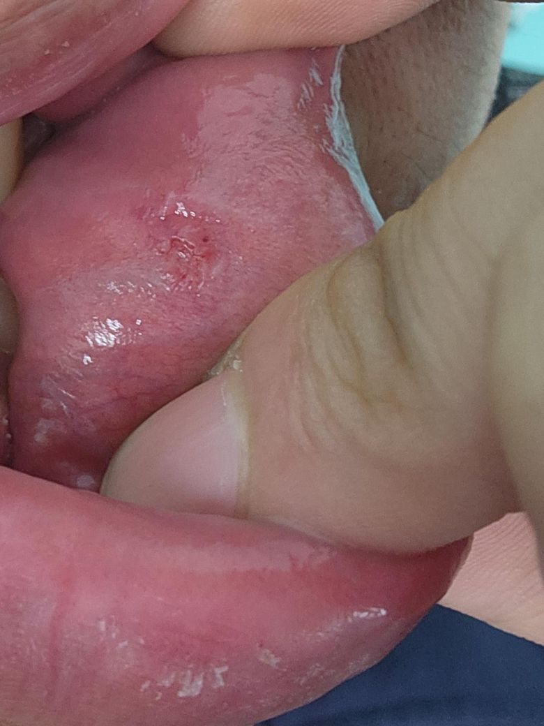 오늘 점심 먹다 오른쪽 입 안이 불편해서 거울보고 발견했어요 형태가 단순 음식물 씹거나 하다 난 상처인지 피곤해서 구내염이 생긴건지 헤르페스 수포같은건지 헷갈려서 문의드려요