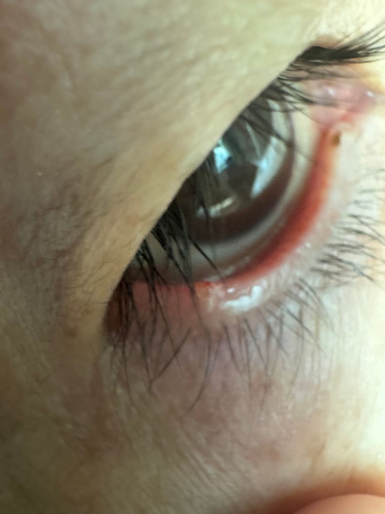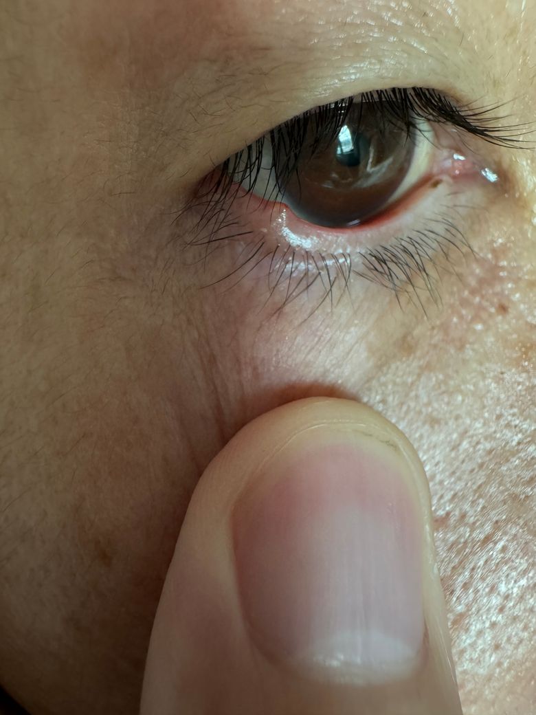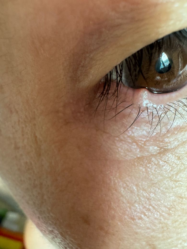 사진으로만 보았을 때에는 단순 뾰루지나 물혹 같은 소견으로 보이긴 합니다만 다래끼가 서서히 진행되는 것일 수도 있습니다. 관련하여서는 안과적으로 진료 및 검진을 받아보시길 권고 드립니다.