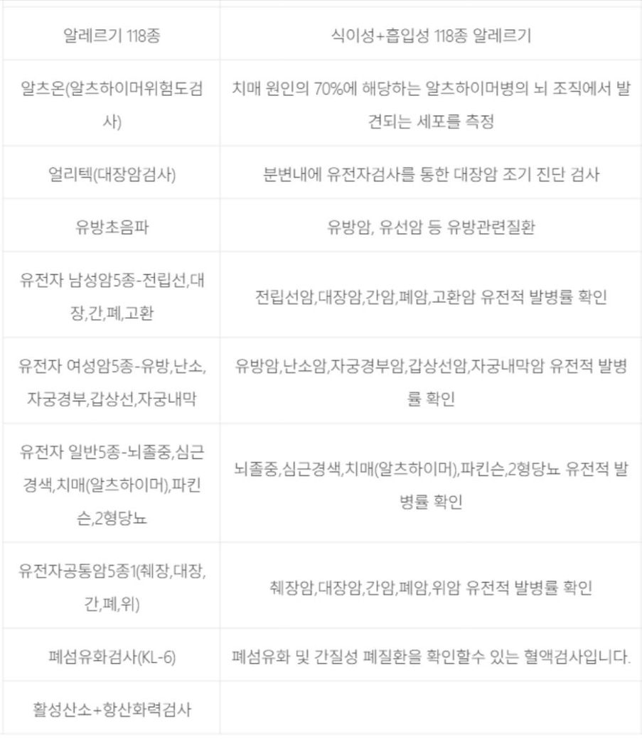 위 캡처한 자료 남성측에 나와있는 자료에 따라서 검사를 해보시면 됩니다.